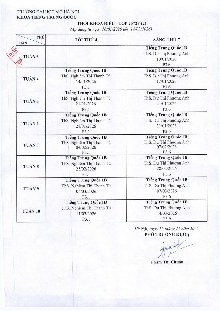 Thống báo kế hoạch học kỳ II năm học 2025-2026 hệ VB2