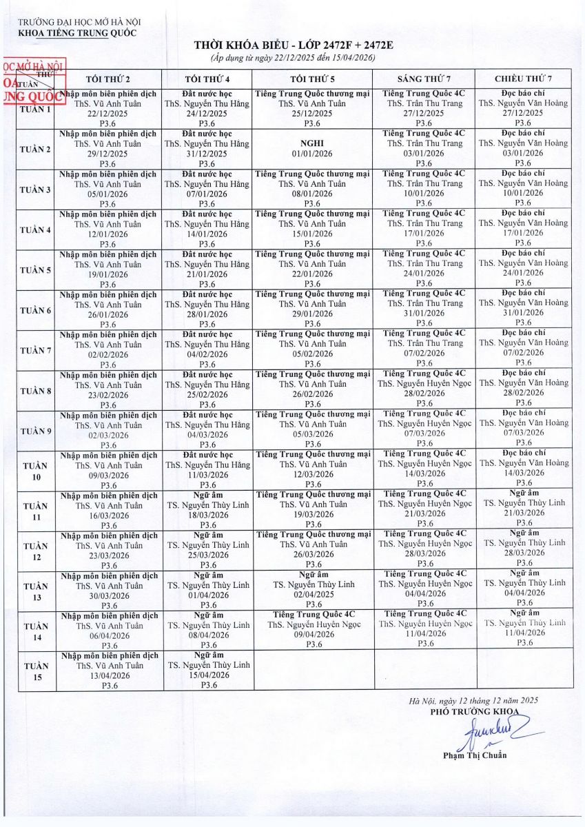 Mục tiêu chuẩn đầu ra, khung chương trình đào tạo ngành Ngôn ngữ Trung Quốc 2022