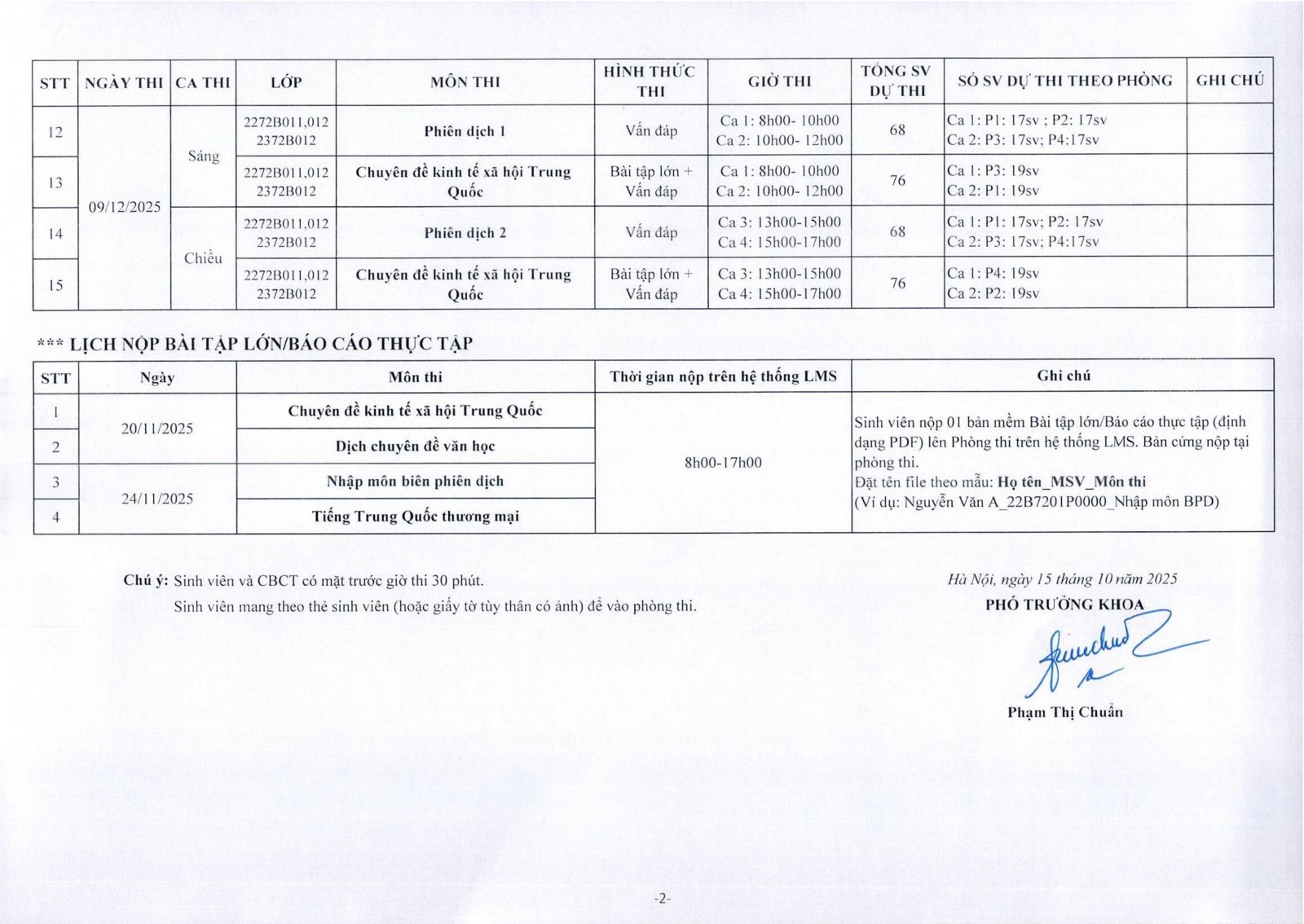 Thông báo lịch thi học kỳ I năm 2025-2026 hệ Văn bằng 2