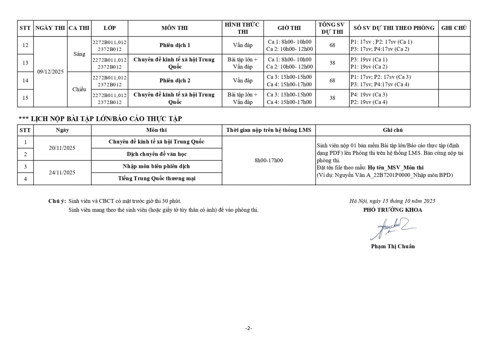 Thông báo Lịch thi học kỳ I năm học 2025-2026 hệ Chính quy