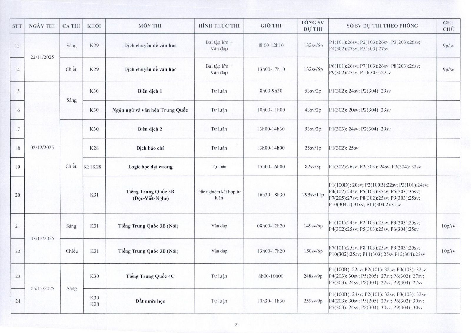 Thông báo lịch thi học kỳ I năm 2025-2026 hệ Văn bằng 2