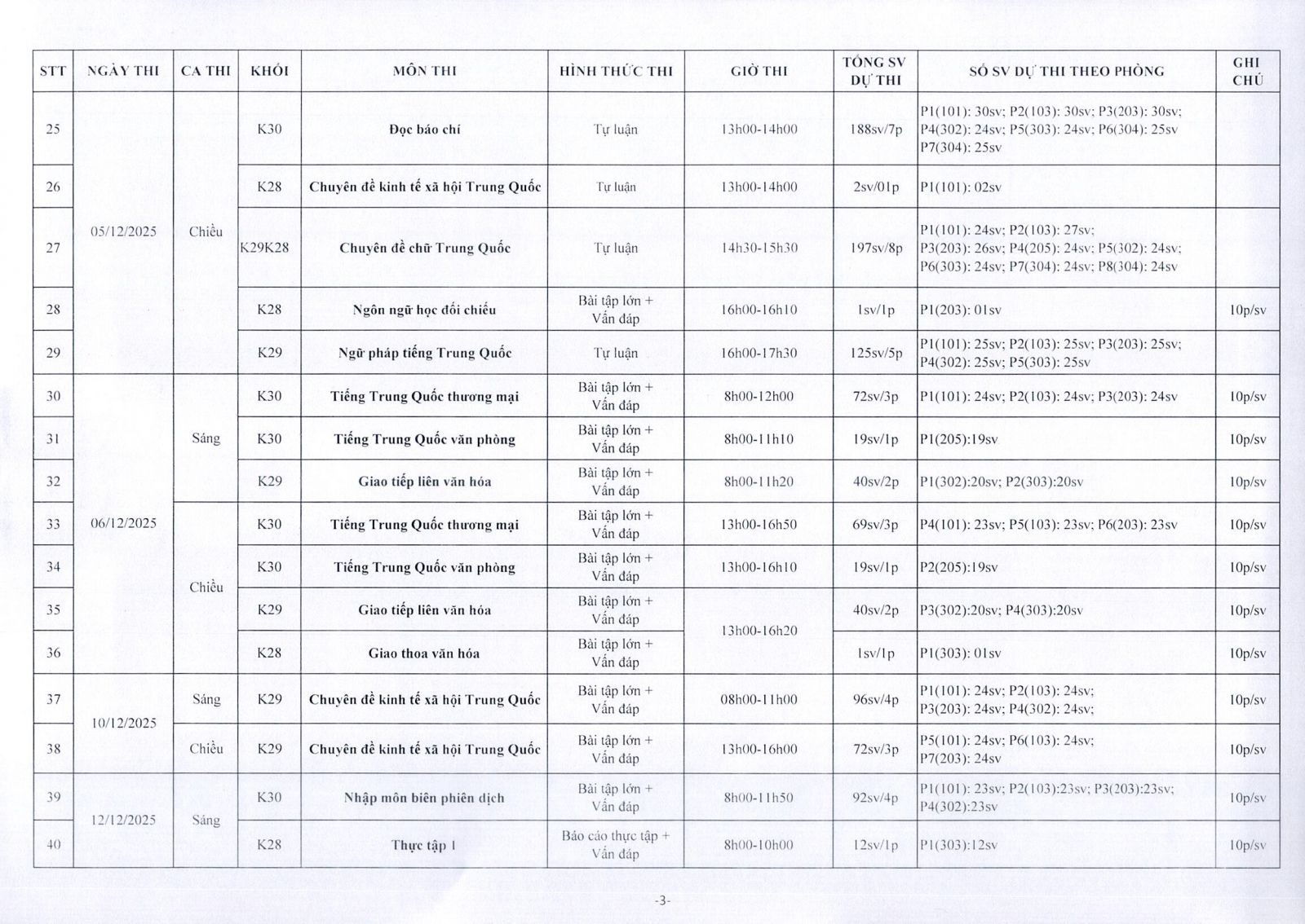 Thông báo lịch thi học kỳ I năm 2025-2026