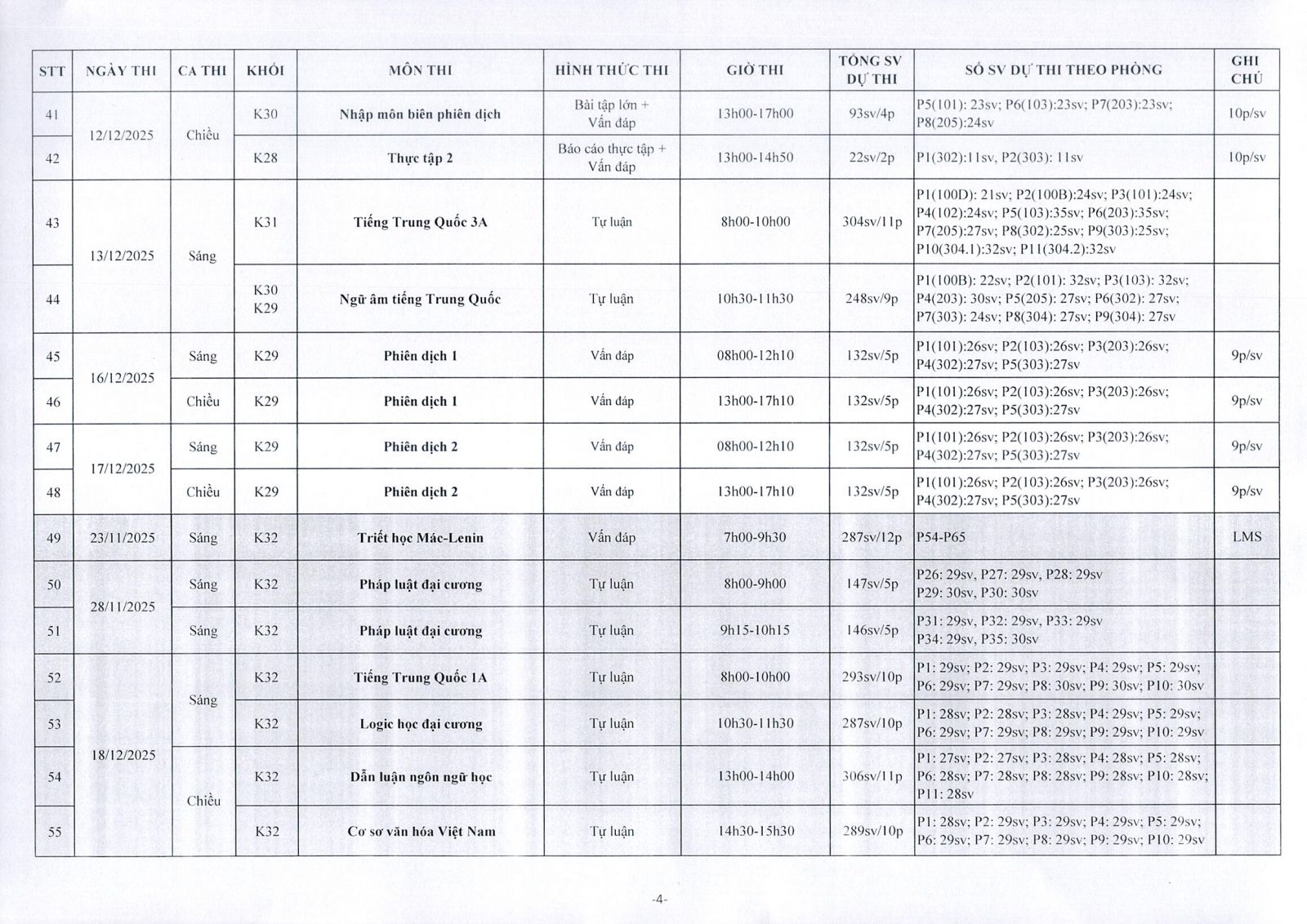 Thông báo Lịch thi học kỳ I năm học 2025-2026 hệ Chính quy