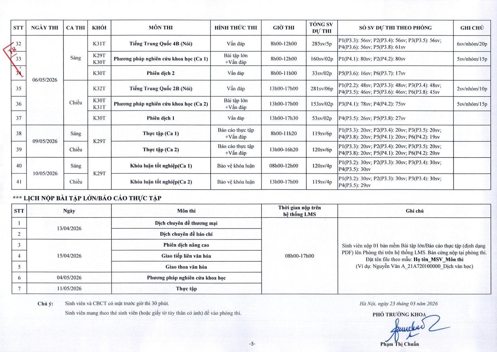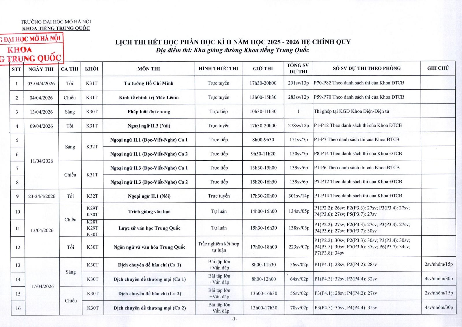 Thông báo Lịch thi học kỳ II năm học 2025-2026 hệ Chính quy