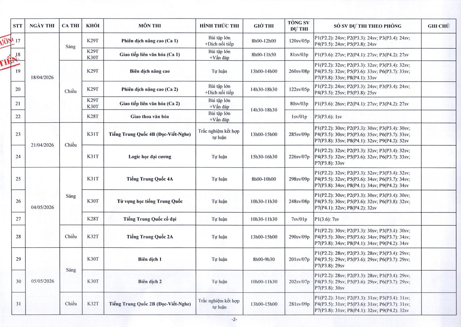 Thông báo Lịch thi học kỳ II năm học 2025-2026 hệ VB2 Chính quy